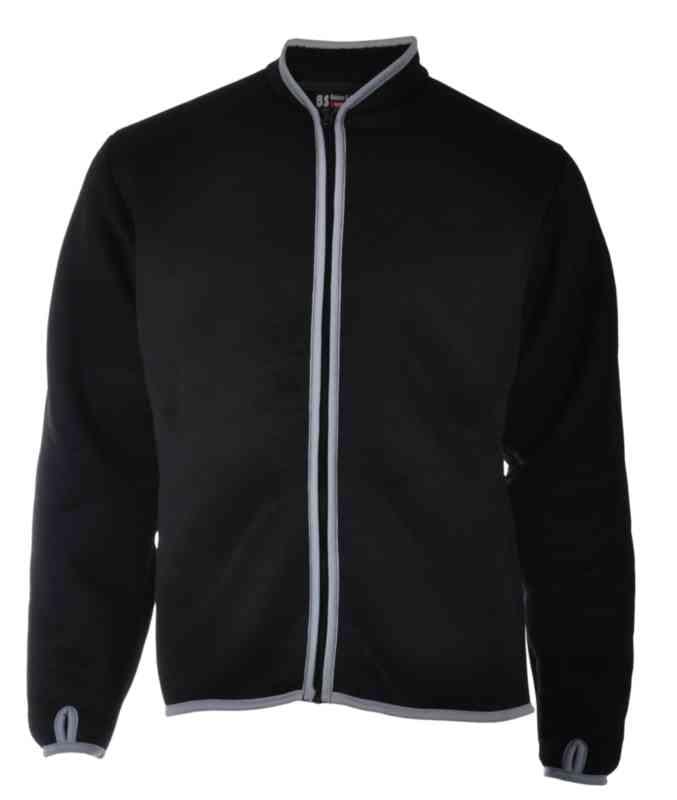 Varm og pustende fiberpelsjakke med glatt utside og fiberpels innside. Glidelås i front. Kantet med bånd i linning og hals. Tommelgrep og kantet med bånd i ermeavslutning. Hempe i nakke.