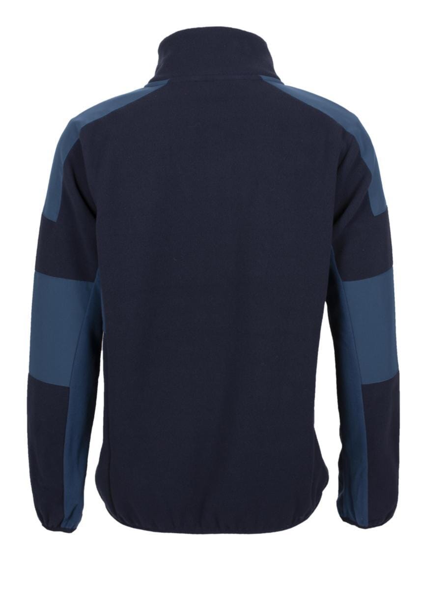 Fleecjakke med børstet innside. Forsterket med softshell på skulder og albue. Kroppsnær passform. Formsydde ermer. Forsterkningsbånd i hals. Høy komfortabel krave med børstet innside i to-lags fleece. SBS glidelås i front som går helt opp i kraven, hakebeskyttelse. To brystlommer med vertikal SBS glidelås. Forlommer med vertikal SBS glidelås og børstet innside. To store innvendige lommer med dobbelt stoff og kantet åpning. Ermeavslutning med elastikk, kantet med bånd. Nakkehempe. Vask: 40°C, Kan ikke strykes, Kan ikke tørketromles, Kan ikke renses, Ingen klorbleking