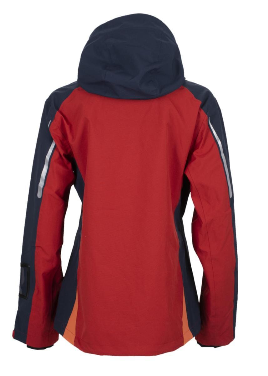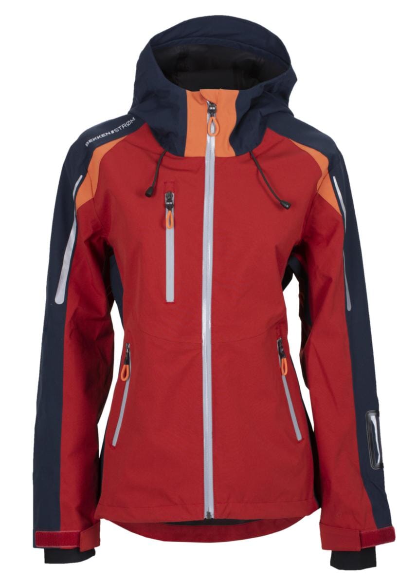 Skalljakke dame designet for best mulig bevegelsesfrihet. Pustende, vind- og vanntett. Helteipet konstruksjon. Vannsøyle 20.000 mm, pustende 8.000 mm g/m² 24t. Polyester fôr i front. Høy krave og forlenget rygg. Vannavvisende YKK® glidelås i front som går helt opp i kraven, hakebeskyttelse. Lufting under ermer med vannavvisende SBS glidelås med klaff. Fullt justerbar hette med elastisk strammesnor i åpning og bak. Forlommer med diagonal vannavvisende SBS glidelås. Høyre brystlomme med vannavisende SBS glidelås. Formskåret ermeavslutning med borrelåsregulering. Elastisk strammesnor i linning. Refleksdetaljer.