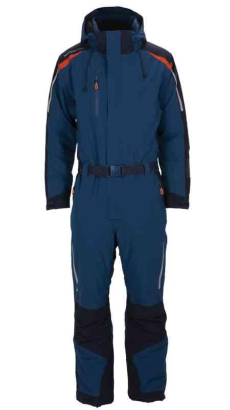 Bekken og Strøm Vinterkjeledress designet for best mulig bevegelsesfrihet. Pustende, vind- og vanntett. Vannsøyle 20.000 mm, pustende 4.000 g/ m²/24t. Helteipet konstruksjon. Forsterket med 2-veis rip-stop polyester i skulder, ermer, linning, sete, knær og ben. Fôret med 100% polyester 120 g/m2 i kropp og 100 g/m i ermer. Mesh panel i rygg for økt luftsirkulasjon. Høy polstret krave med børstet polyester innside i nakke. Vannavvisende YKK® glidelås i front som går helt opp i kraven, stormklaff med trykknapper og hakebeskyttelse. Lufting under ermer og innside ben med vannavvisende SBS glidelås med klaff. Avtakbar fôret hette, fult justerbar med elastisk strammesnor i åpning og bak. Uttrekkbar Balaklava skjult i lomme i nakke. Beltehemper i liv. Utagbart belte med plastspenne. Forlommer med vannavisende SBS glidelås og børstet polyester innside. Høyre brystlomme med vannavvisende vertikal SBS glidelås. Innvendige brystlommer med vertikal SBS glidelås. ID-kortlomme på venstre erme. Ermeavslutning med borrelåsregulering og innvendig elastisk mansjett. Vannavisende SBS støvelglidelås og snølås med strikk. Regulering av vidde i benavslutning med trykknapper. Refleksdetaljer.