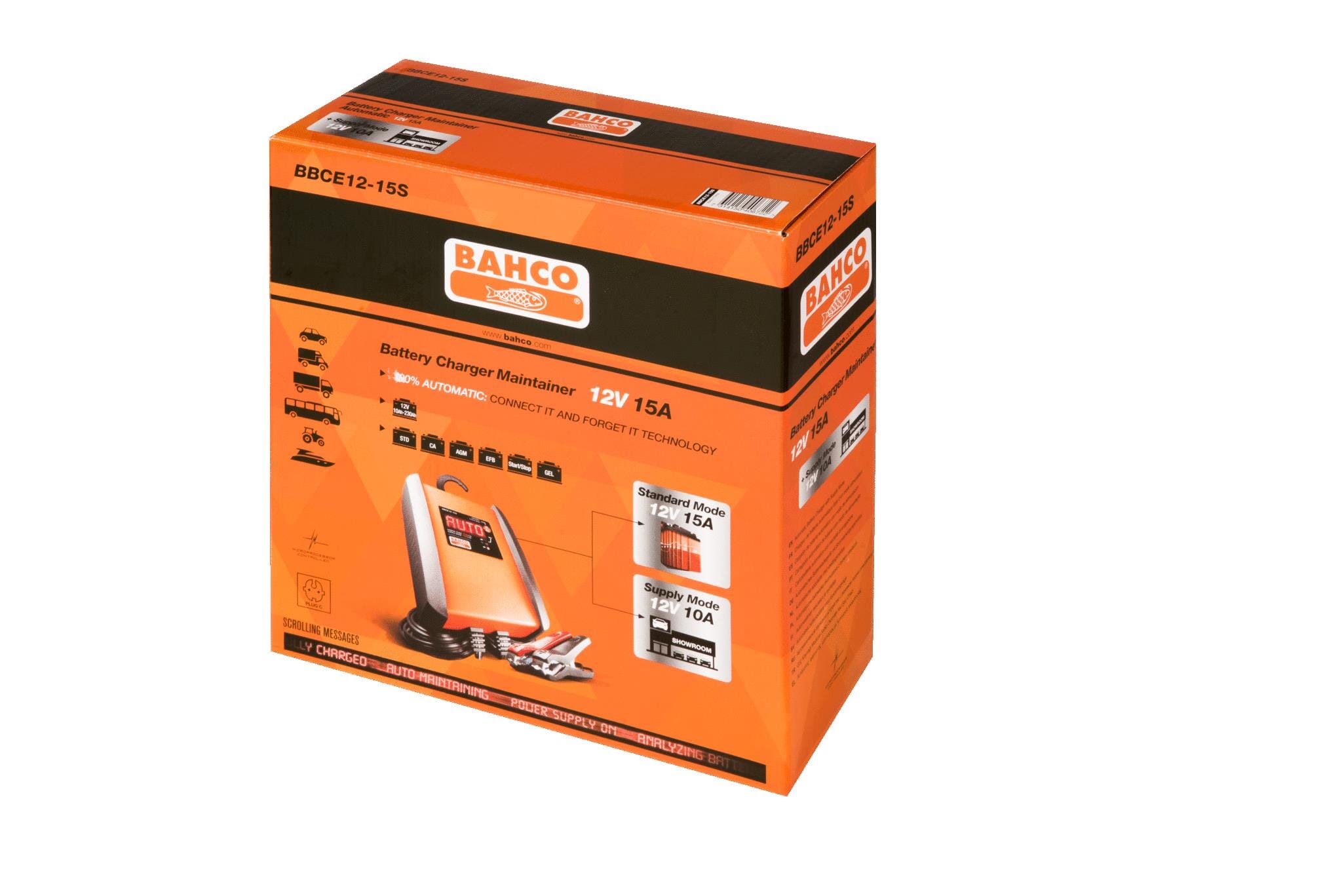 15 A helautomatisk lader/strømkilde for 12 V batterier med forsyningsmodus BBCE12-15S