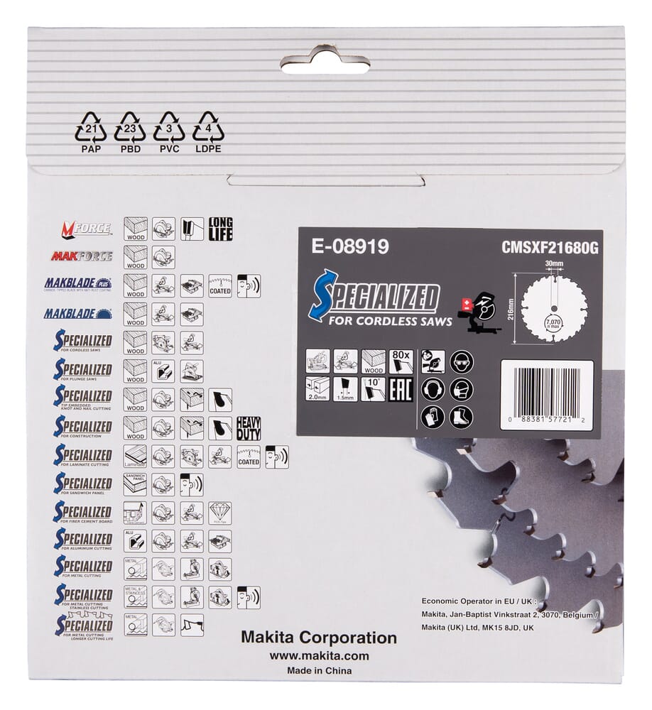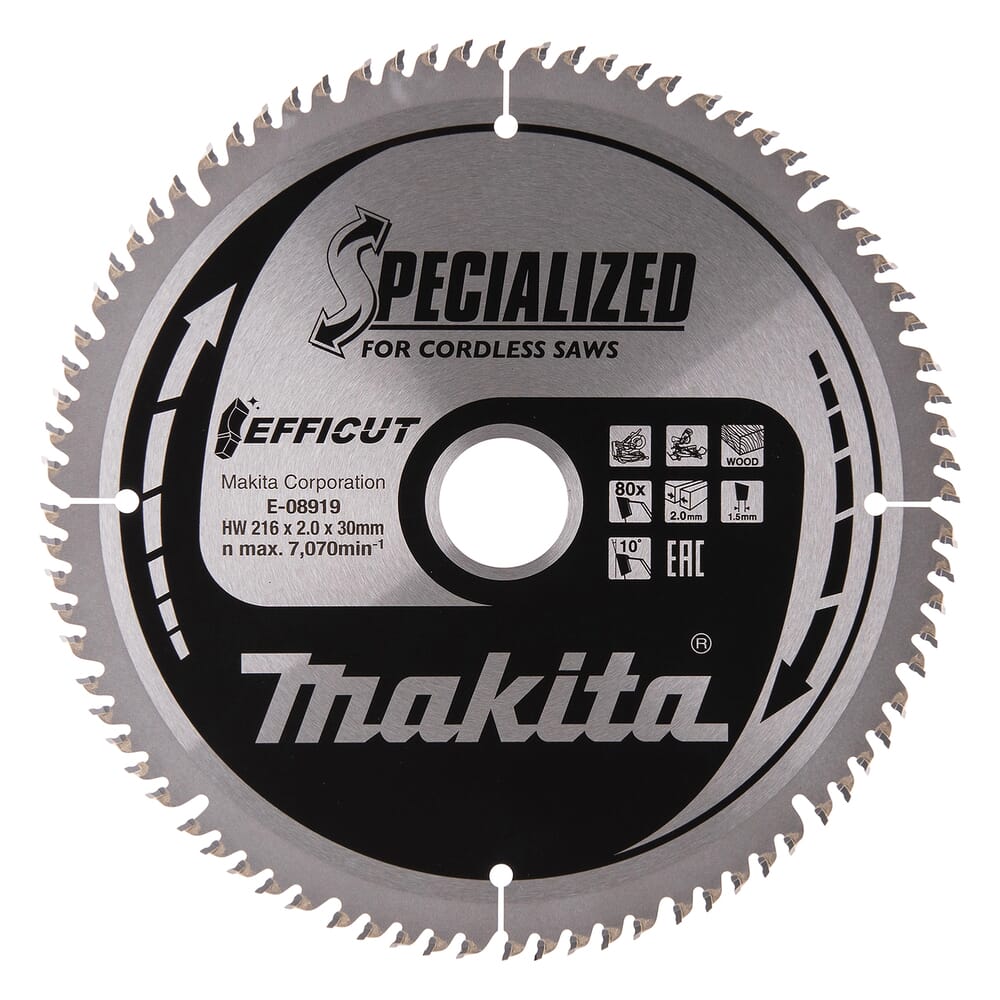 Presist og effektivt sirkelsagblad utviklet for kapping av tre og trebaserte materialer. Makita E-08919 er beregnet for arbeid der høy snittkvalitet og pen finish er viktig.