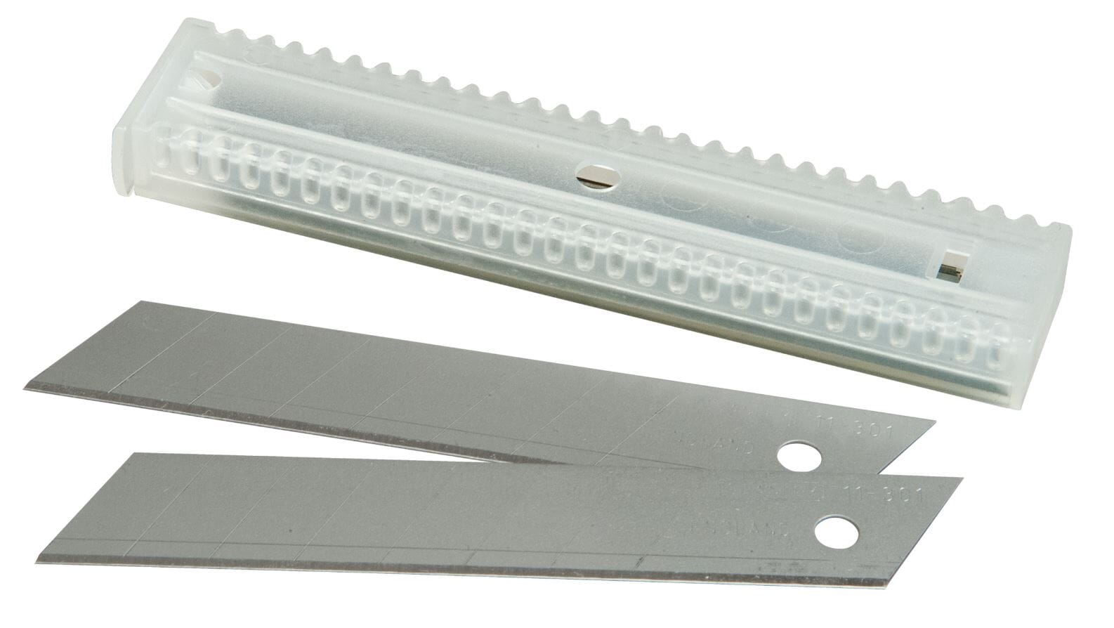 Knivblad - Snap Off- 18 mm. Tykkelse 0,55 mm. Dispenser for reserveblad med bladbryter og lagring av brukte segmenter. Forsterket tykkelse - spesielt for intens bruk. 7 brytbare bladsegmenter. Blad for 18 mm skjæreredskap. Passer Stanley kniv 10-218, 10-480, 10-380, 10-280, 10-220, 10-418 og 10-151 og de fleste andre 18mm snap-off blad kniver.