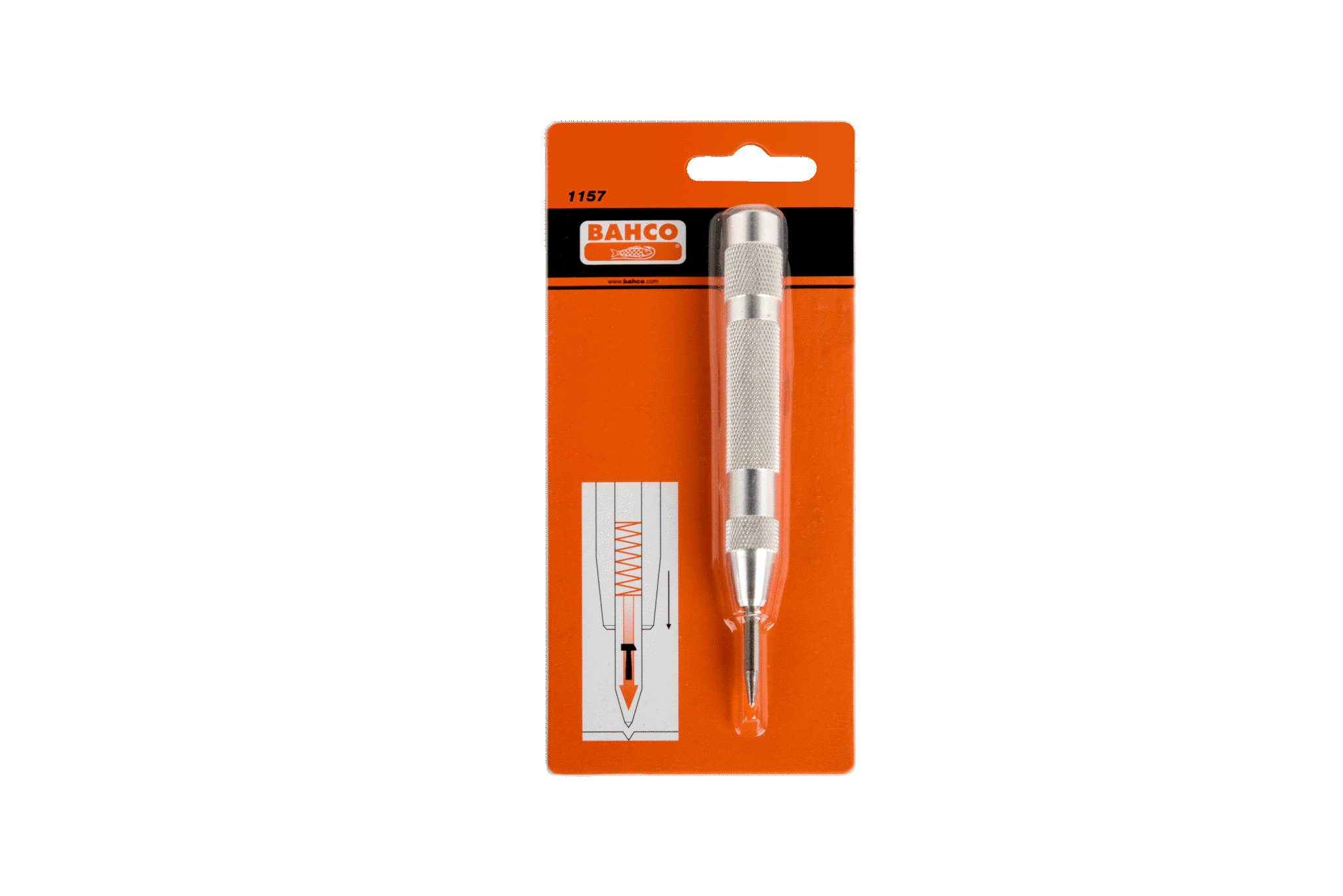 Automatisk kjørner som slår et presist merke med ett trykk — helt uten behov for hammer. Bahco 1157 er ideell for arbeid hvor nøyaktig merking før boring eller punktmerking er viktig.