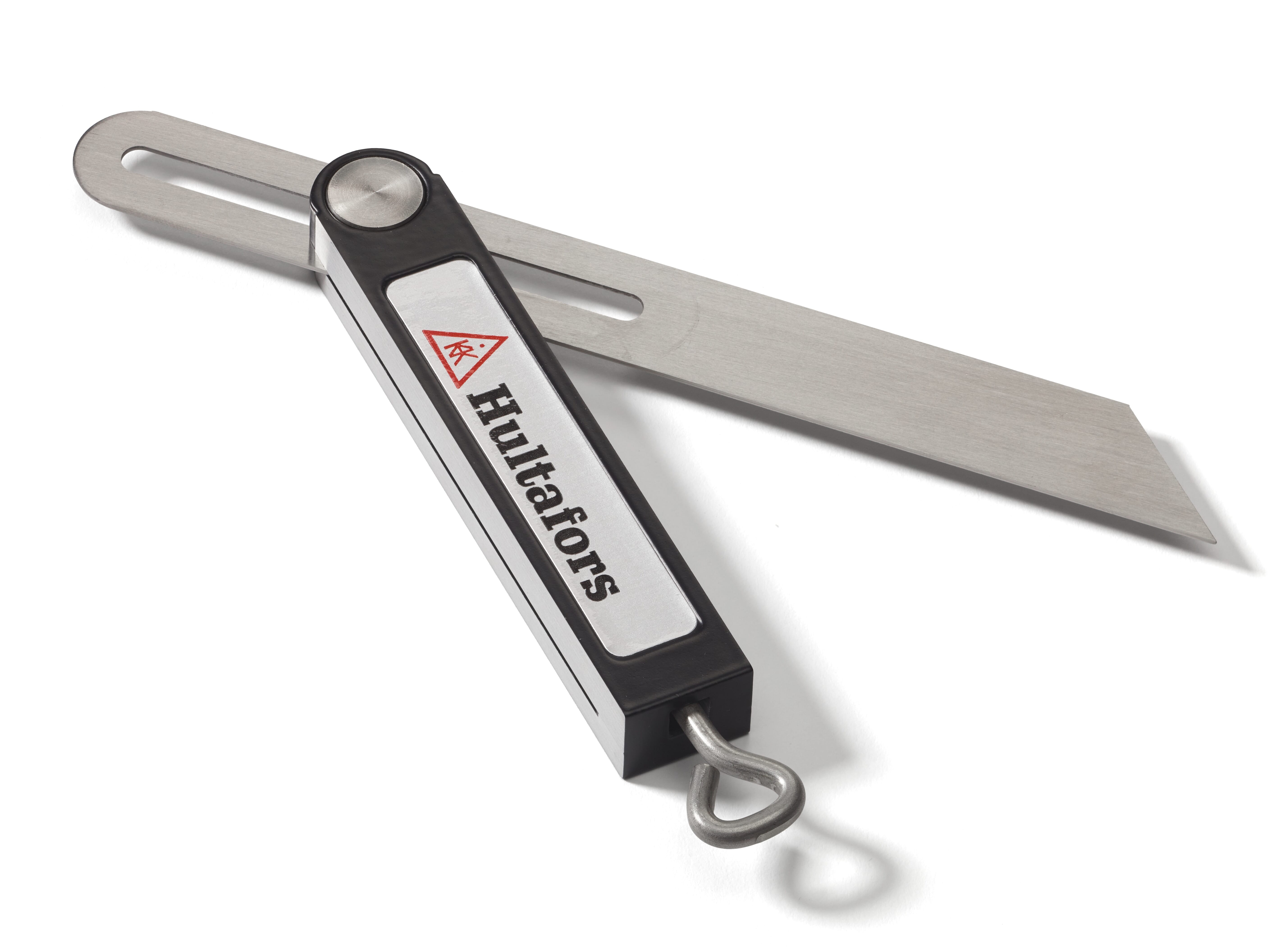 Smygvinkel med klinge av rustfritt stål og anslag av aluminium med freste anleggsflater, for kopiering og overføring av vinkler til arbeidsstykket.