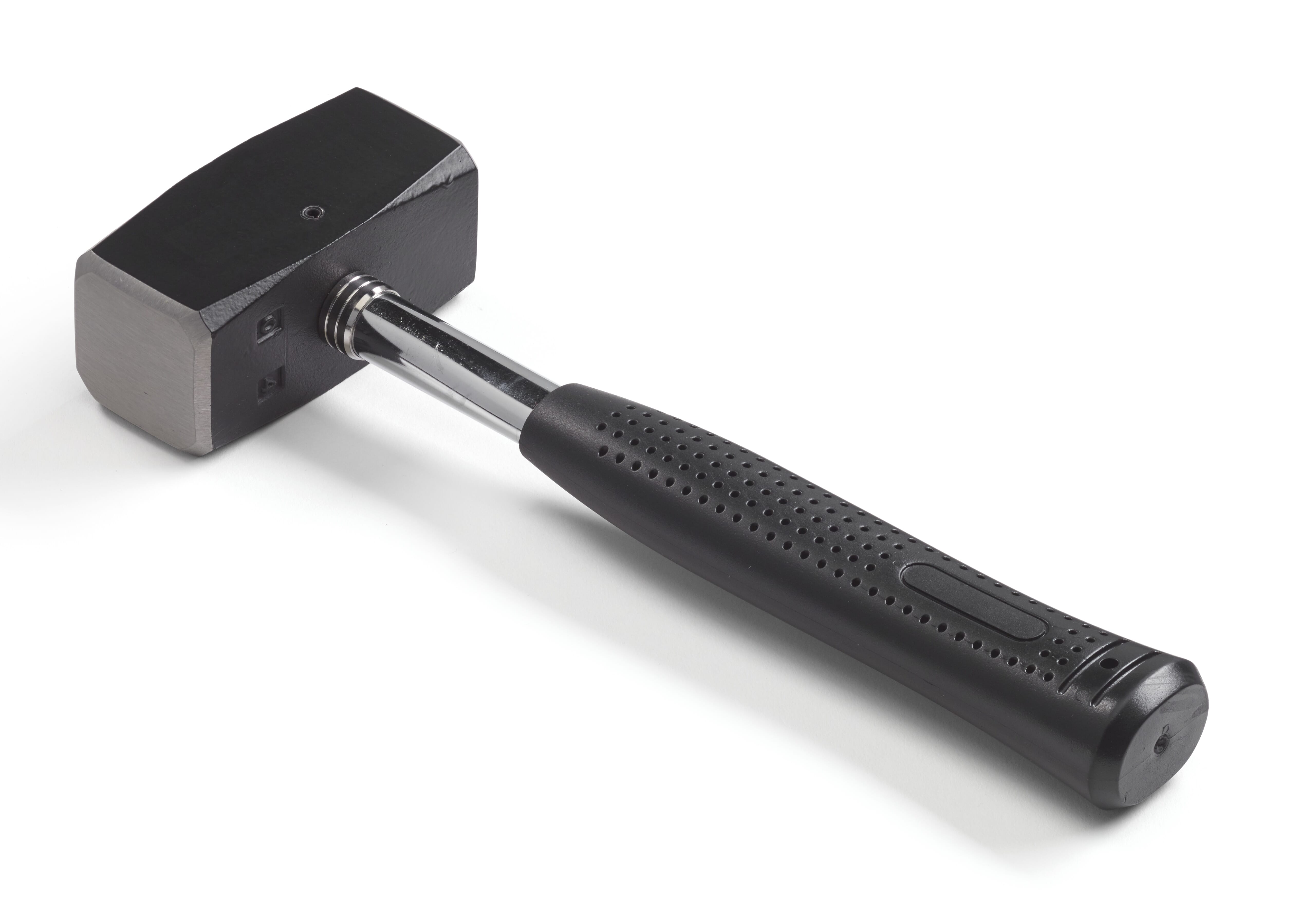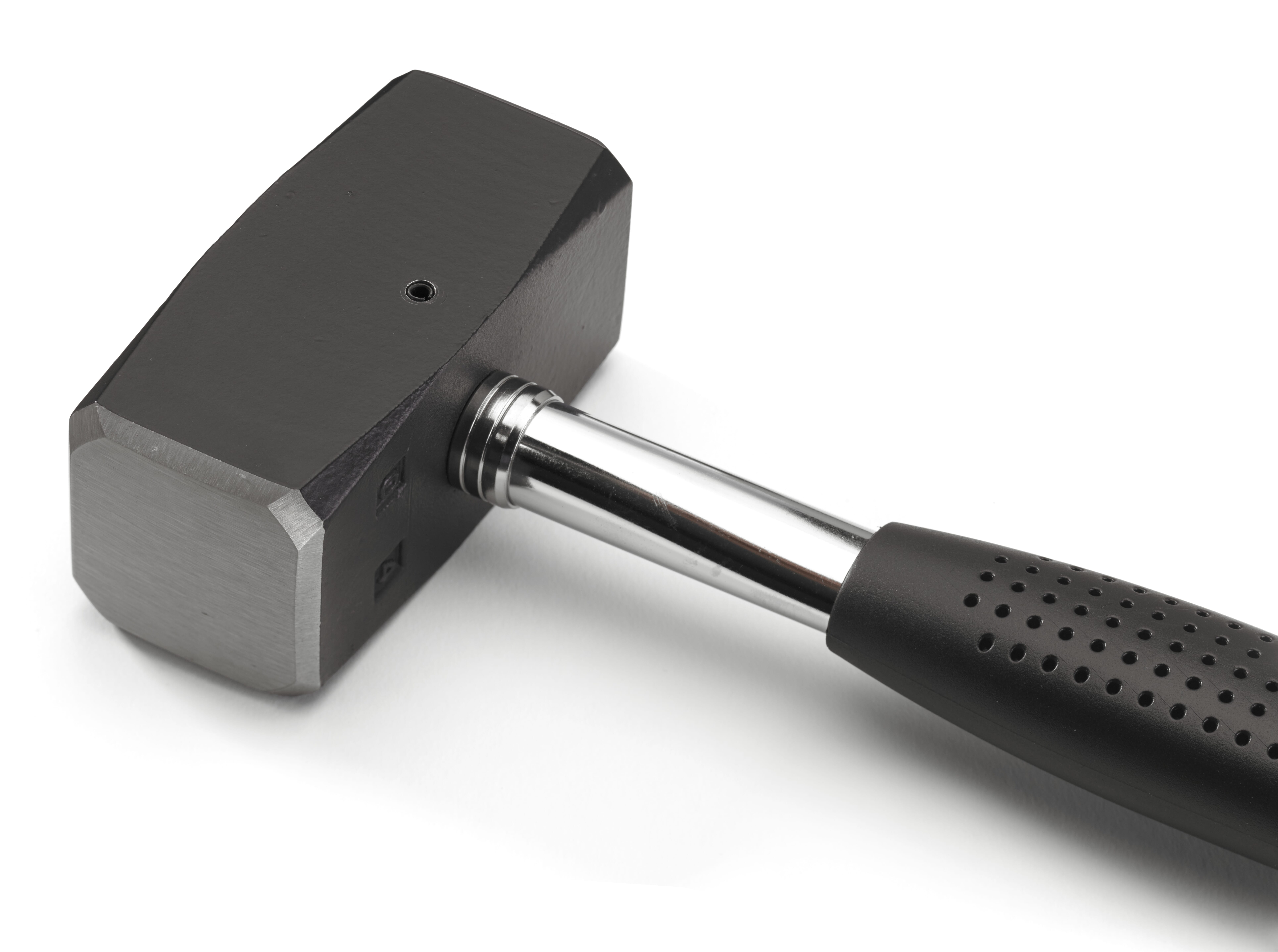 Svartlakkert meiselhammer med herdet og planslipt slagflate på begge sider. Skaft i stål med gummihåndtak.