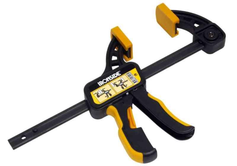Glassfiberarmert nylon. Profilert skinne i svartoksidert herdet stål. Kan brukes både som tvinge og spreder. Spennekapasitet: 150 – 180 kg. Gapets dybde: 85 mm.