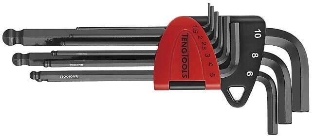 - Sett med 9 sekskantnøkler i metrisk størrelse