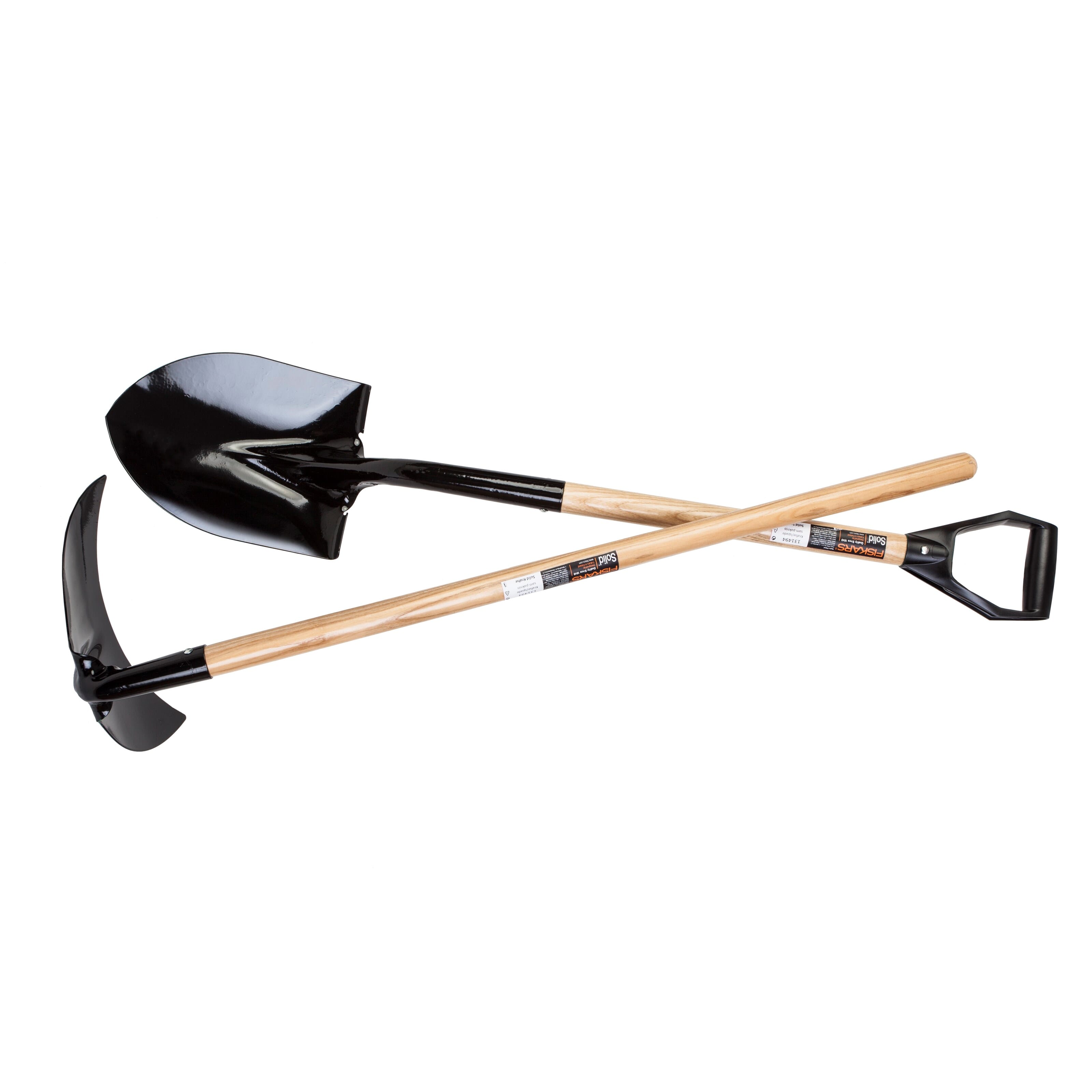 Sam-pakning av 2 helt nødvendige produkter når det gjelder opparbeidelse og vedlikehold av hage. Stikkspade og krafse.